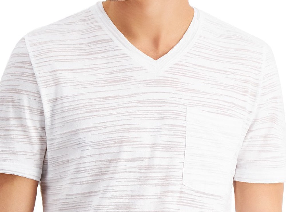 INC International Concepts Men's Broken-Stripe V-Neck T-Shirt White Size Large