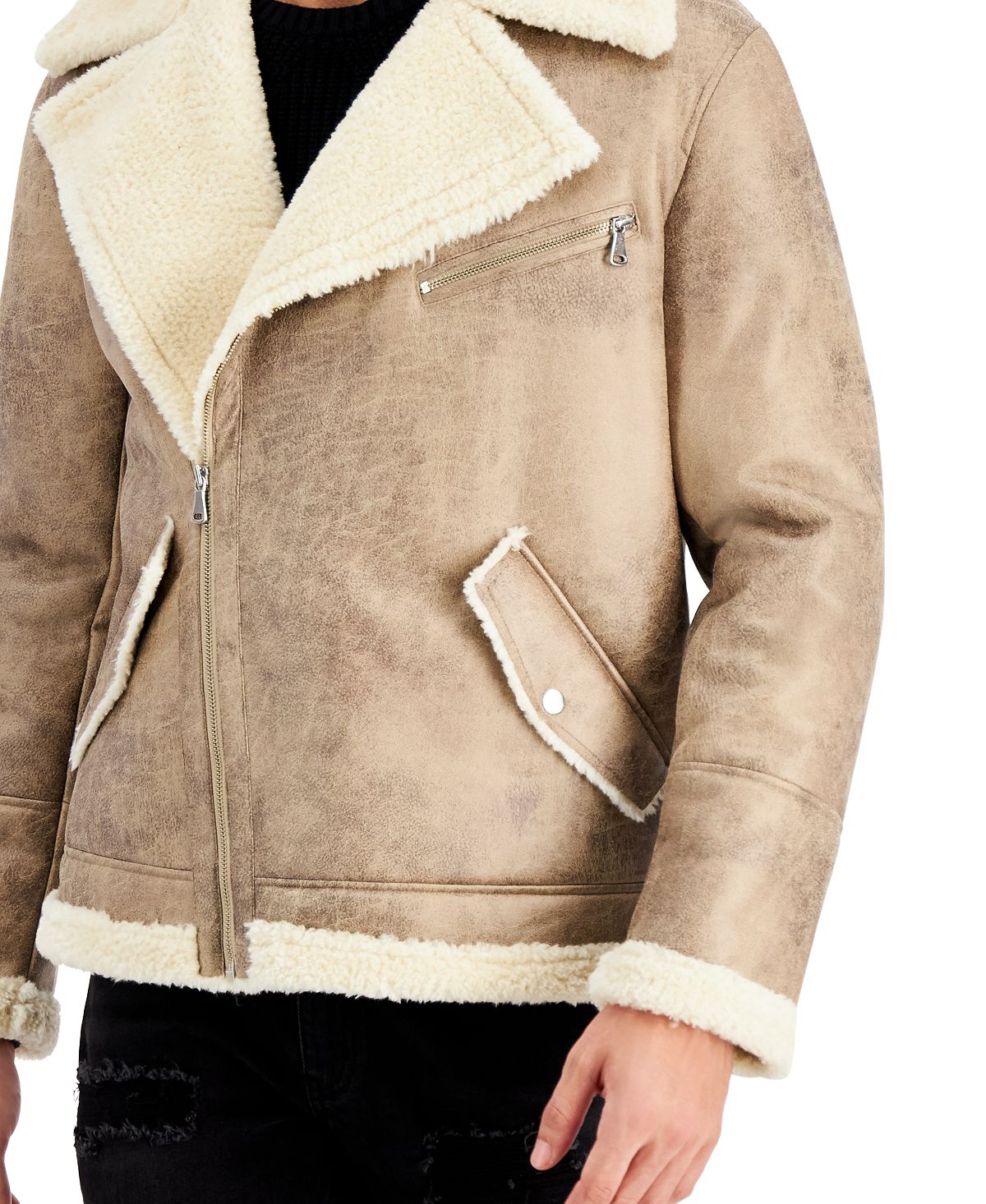INC International Concepts Men's Regular Fit Faux Shearling Jacket Beige Size Small