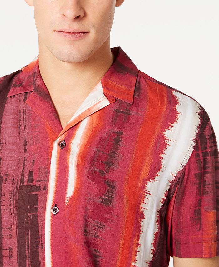 Keep your casual look comfortable and cool with the spread camp collar and tie-dyed style stripes of this shirt from INC International Concepts. | Regular fit| Spread camp collar| Tie-dyed stripe styling | | Rayon| Machine washable