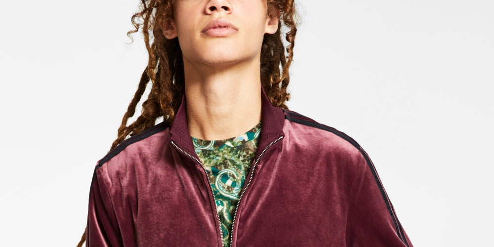 Let your laid-back style shine with the shimmering velour and contrast sleeve stripes of this INC International Conceptsredibly comfortable track jacket from INC International Concepts®.| Approx. 29 long| Ribbed-knit mock neck; full-zip front closure| Contrast stripes at sleeves; ribbed-knit cuffs and hem | Two front hand pockets| | Polyester