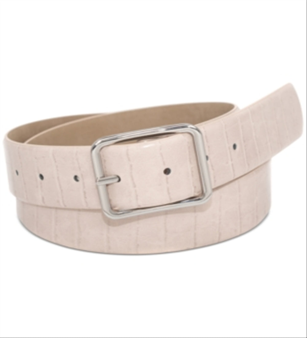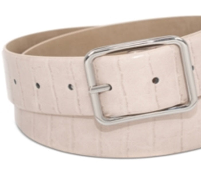 INC International Concepts Women's Croc Embossed Panel Belt Beige Size Large