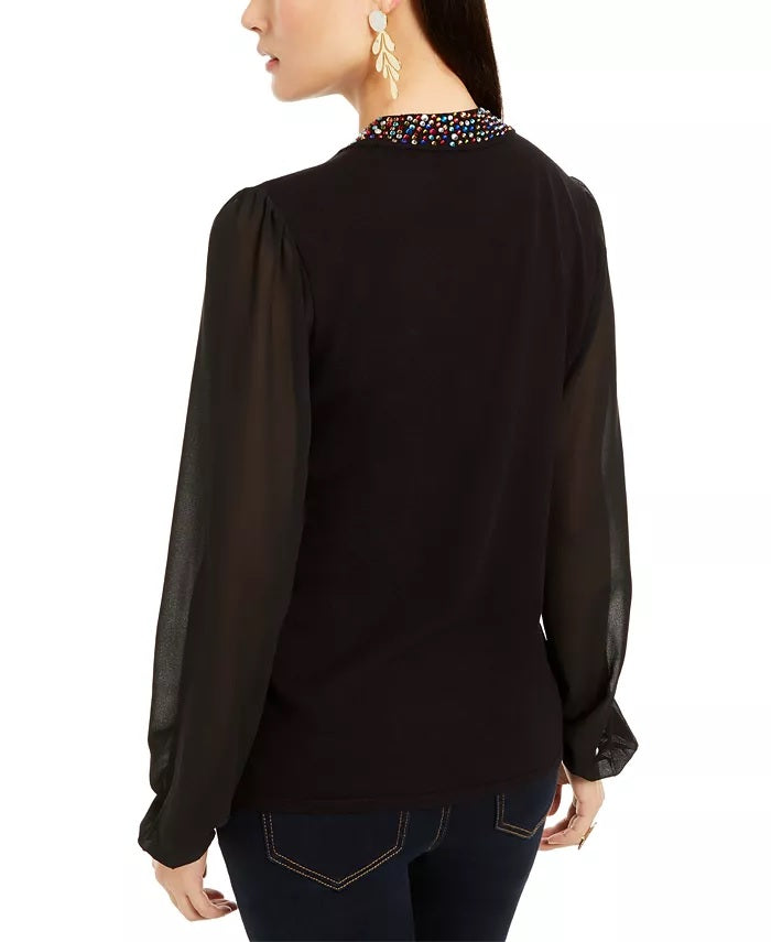 INC International Concepts Women's Embellished Choker Sweater Black Size X-Small