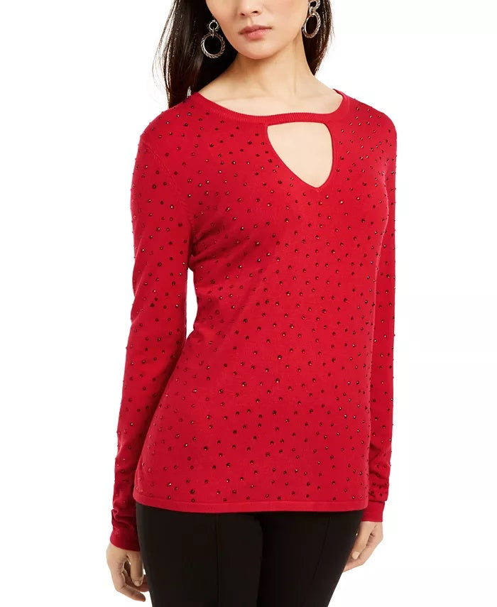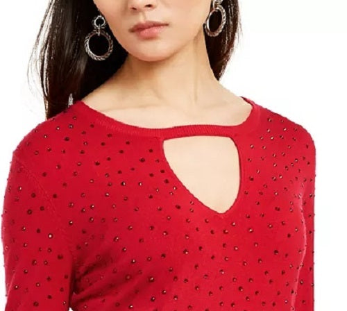 INC International Concepts Women's Embellished Keyhole Sweater Red Size X-Small