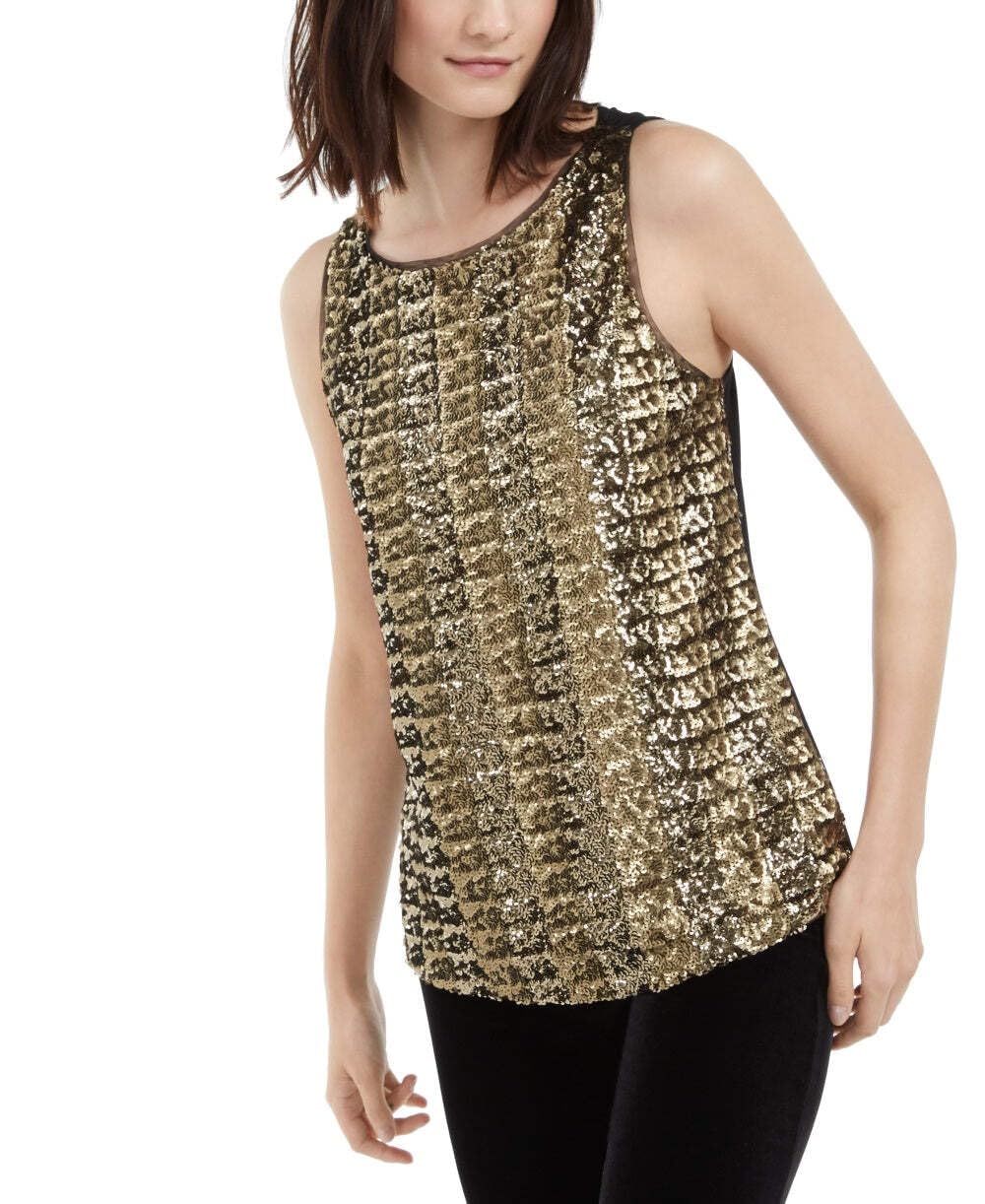 INC International Concepts Women's Gold Sequined Tank Top Size Petite-Medium