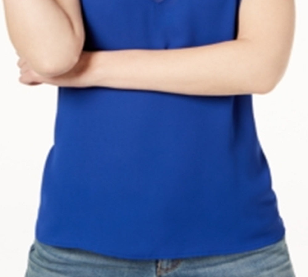 INC International Concepts Women's Illusion Trim Tank Top Blue Size Petite Small