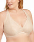 Coverage; Full coverage; full-figure fit|Straps; Adjustable halter straps at back neck|Cups; Seaouter lace; soft mesh lining|Special Features; Vertical lace panels join halter straps to bottom band|Closure; Hook-and-eye closure at back