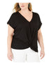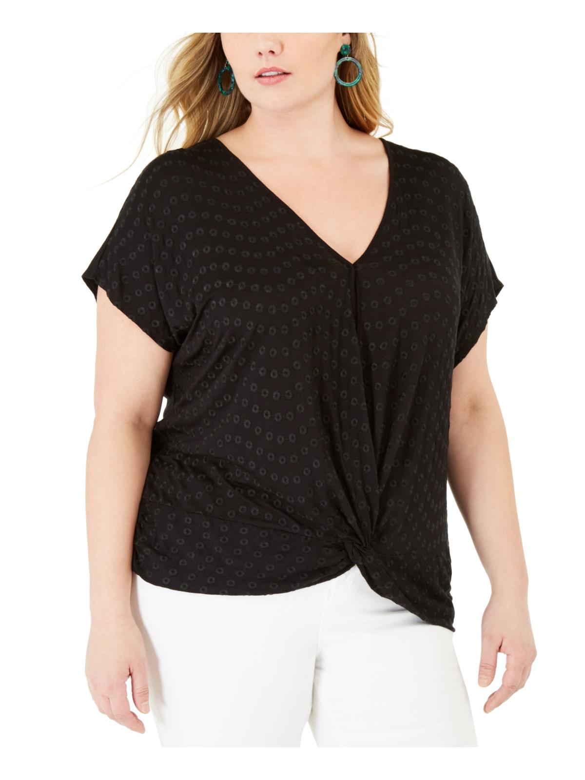 INC International Concepts Women's Plus Eyelet Twist Front Blouse Black Size 0X