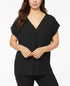 INC International Concepts Women's Plus Mixed Media Dolman Sleeve Top Black Size 1X