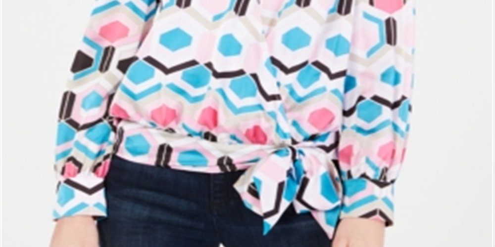 INC International Concepts Women's Printed Faux Wrap Top Multi Size Petite L