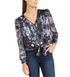 inc printed tie-front puff-sleeve top| women women's clothing - tops
