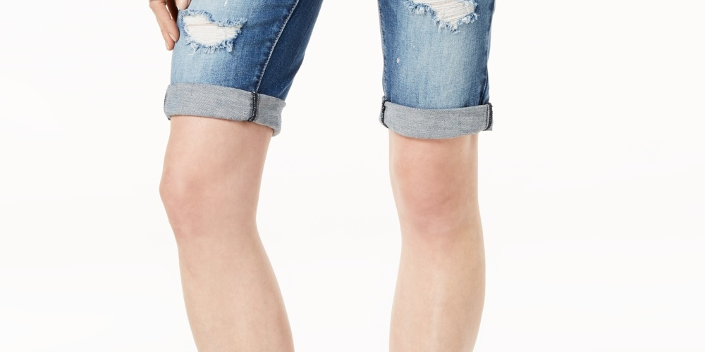 INC International Concepts Women's Ripped Bermuda Shorts Blue Size 8