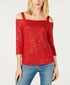 INC International Concepts Women's Sequin Cold-Shoulder Top Red Size Petite S
