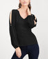 INC International Concepts Women's Split-Sleeve Rhinestone-Button Top Black Size Petite Small