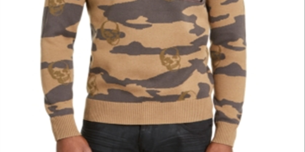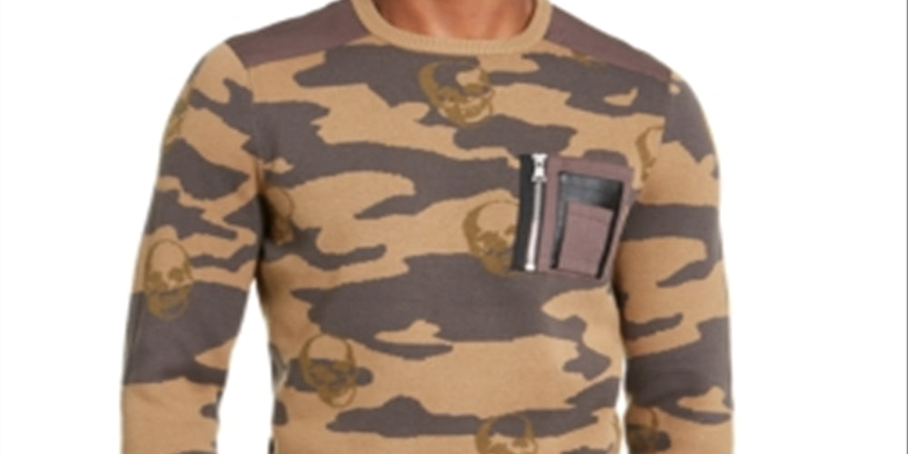 Inc Mens Brown Camouflage Crew Neck Classic Fit Cotton Sweater 3XL