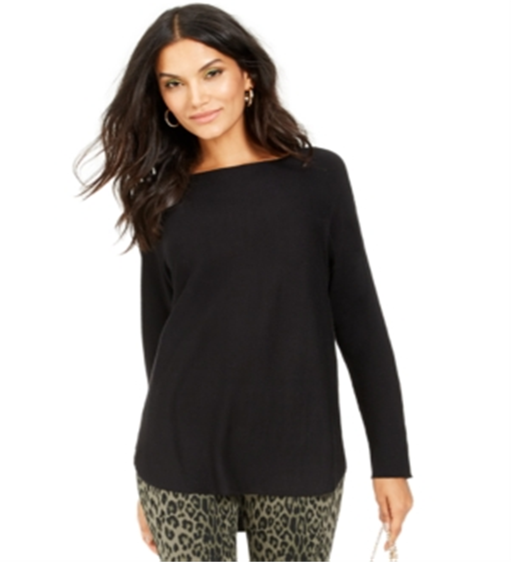INC International Concepts Women's Solid Shirttail Pullover Sweater Black Size Large