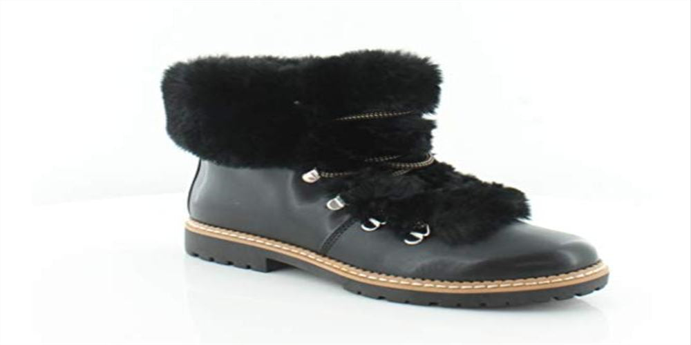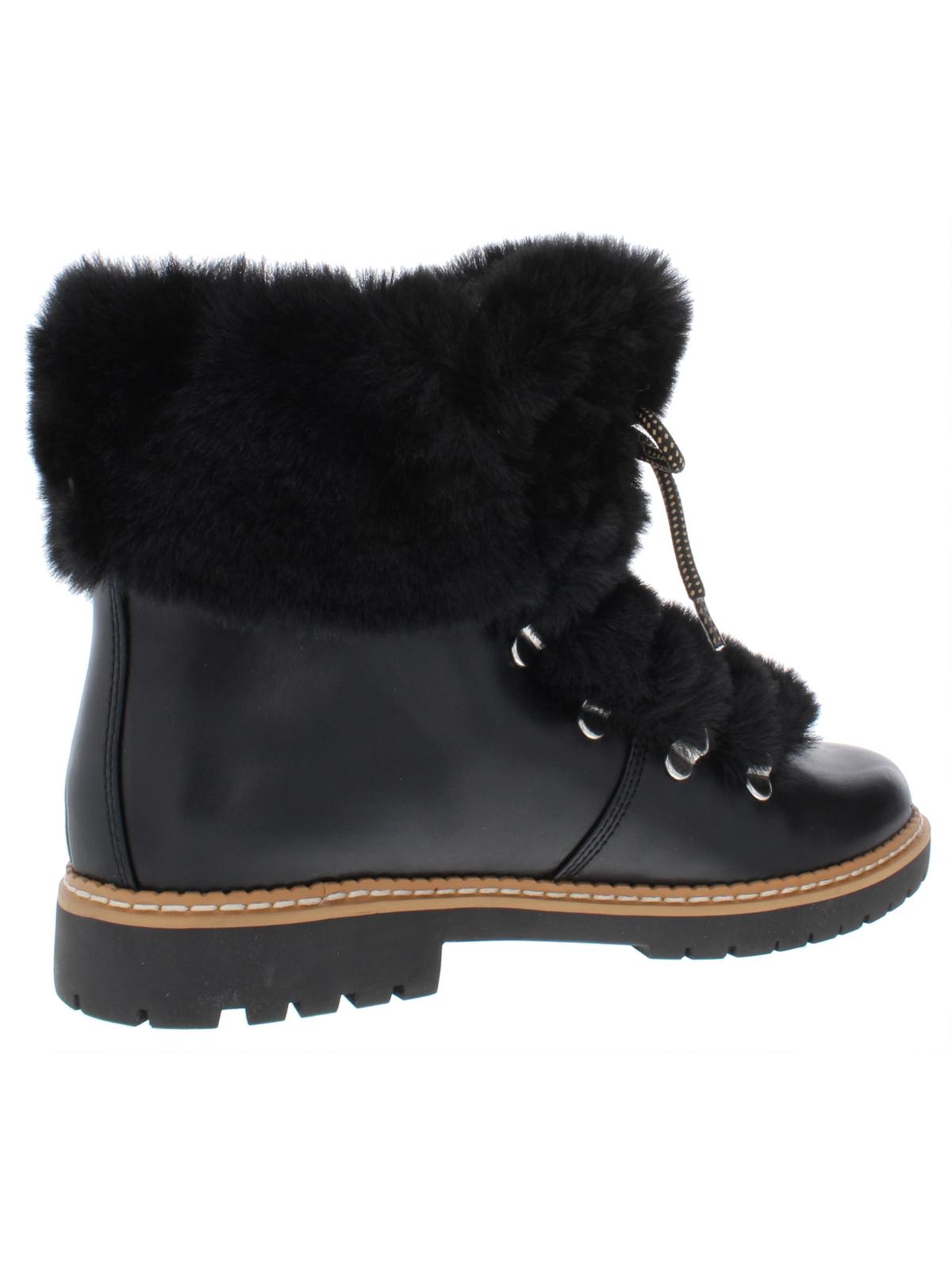INC Women's Platform Fur Trim Comfort Pravale Round Toe Block Heel Lace-up Snow Boots Black Size 7 M