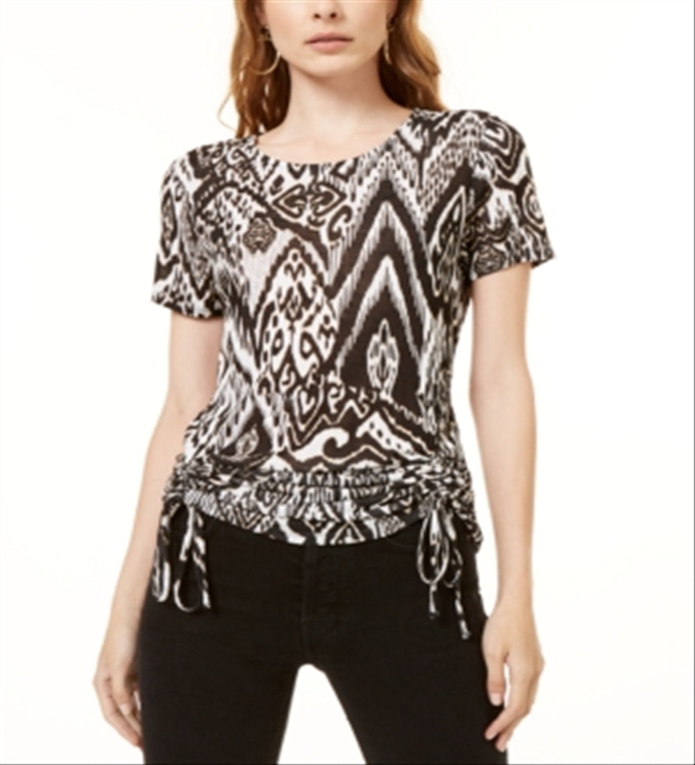 INC Women's Printed Lace-up Top Black Size Small