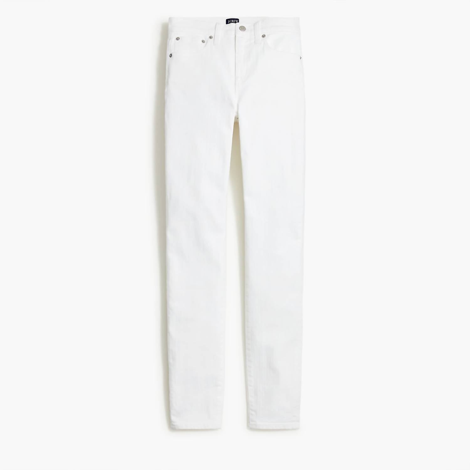 A skinny jean that is both flatering and comfortable. We love this style because it works great with boots, or without! Elevate your wardrobe with the J.Crew 9" Mid-rise Skinny Jean in Signature Stretch, crafted for a perfect blend of comfort and style. With its mid-rise design that sits below the waist, this denim piece features a classic fit that is fitted through the hip and thigh, complemented by a superskinny, straight leg. Made from 90% cotton, 8% recycled polyester, and 2% elastane, this solid white jean offers traditional 5-pocket styling and a convenient zip closure. Originating from Cambodia, it has a tall inseam of 31", and is easy to care for with machine wash and tumble dry.