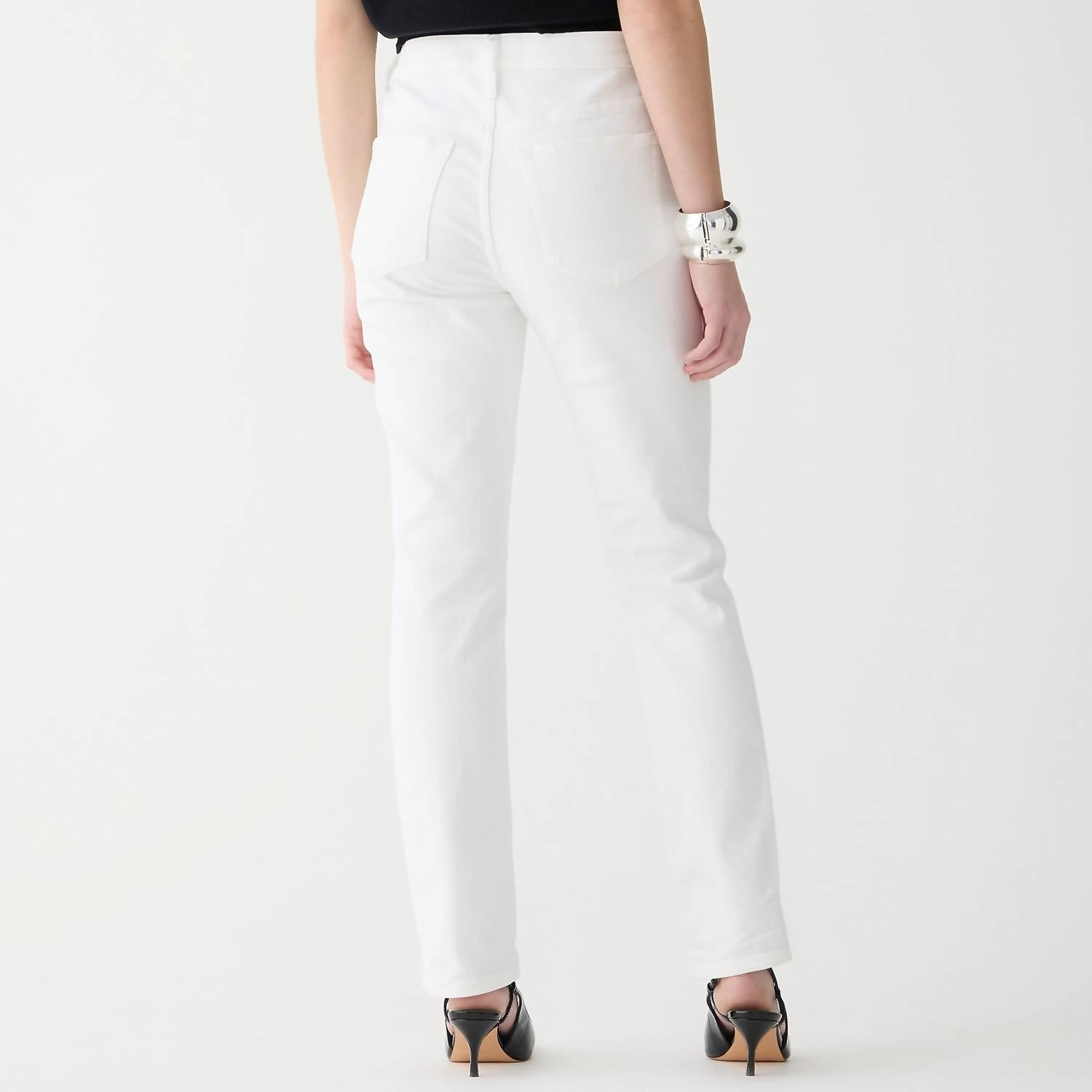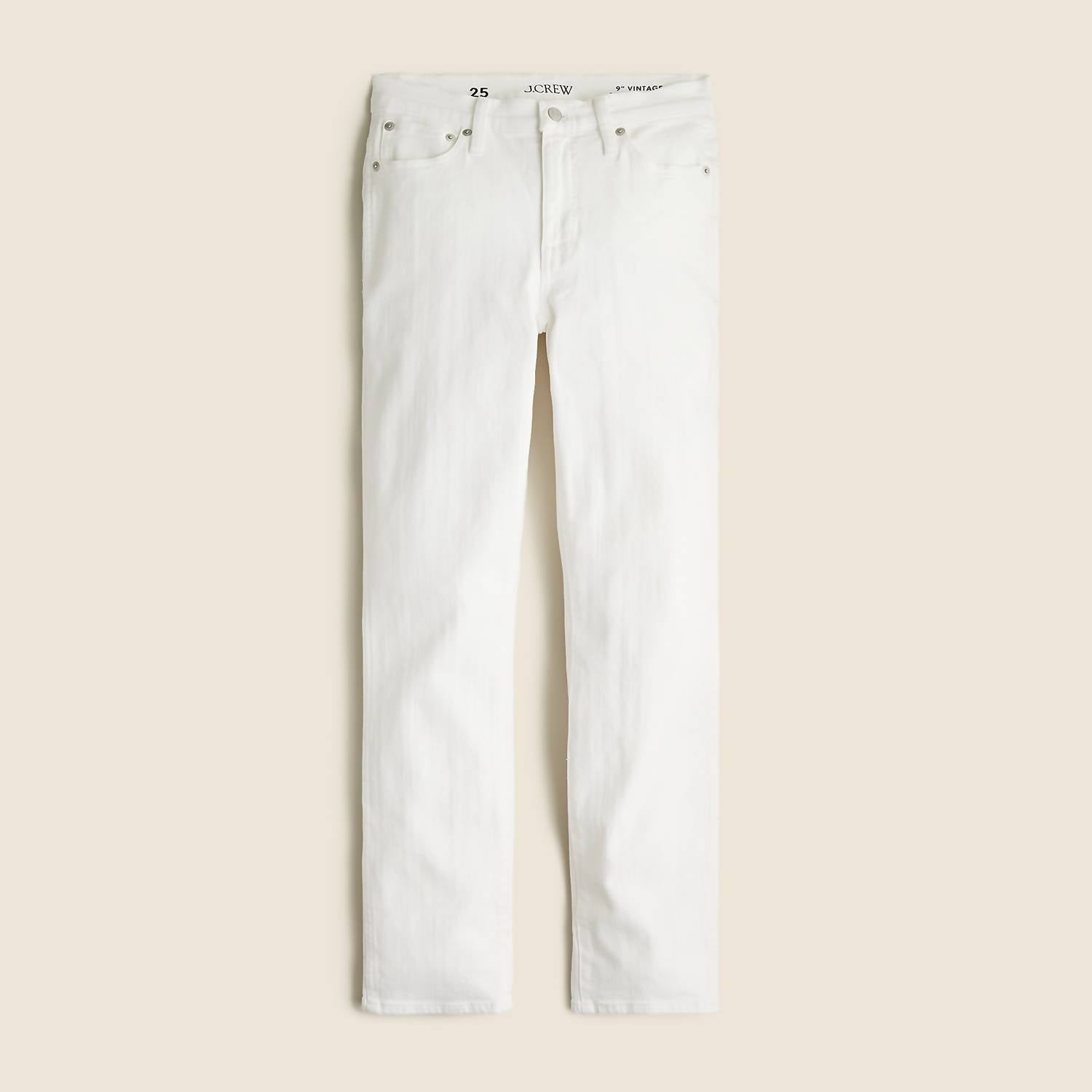 Pair these straight leg jeans with flats, sandals or even heels! You can't go wrong. Introducing the J.Crew 9" Vintage Slim-straight Jean, a refined addition to your wardrobe in an elegant white wash. These jeans boast a flattering mid-rise fit, with a cool straight leg that is both modern and chic, featuring a front rise of 9", 28" inseam, and 12 3/4" leg opening. Made with 90% cotton, 8% recycled polyester, and 2% elastane, they combine comfort and sustainability, crafted in Cambodia from recycled materials like plastic bottles and fabric scraps. Closure: Zip closure. Care: Machine wash and tumble dry. Design includes Perfecting Pockets™ for a smooth silhouette.
