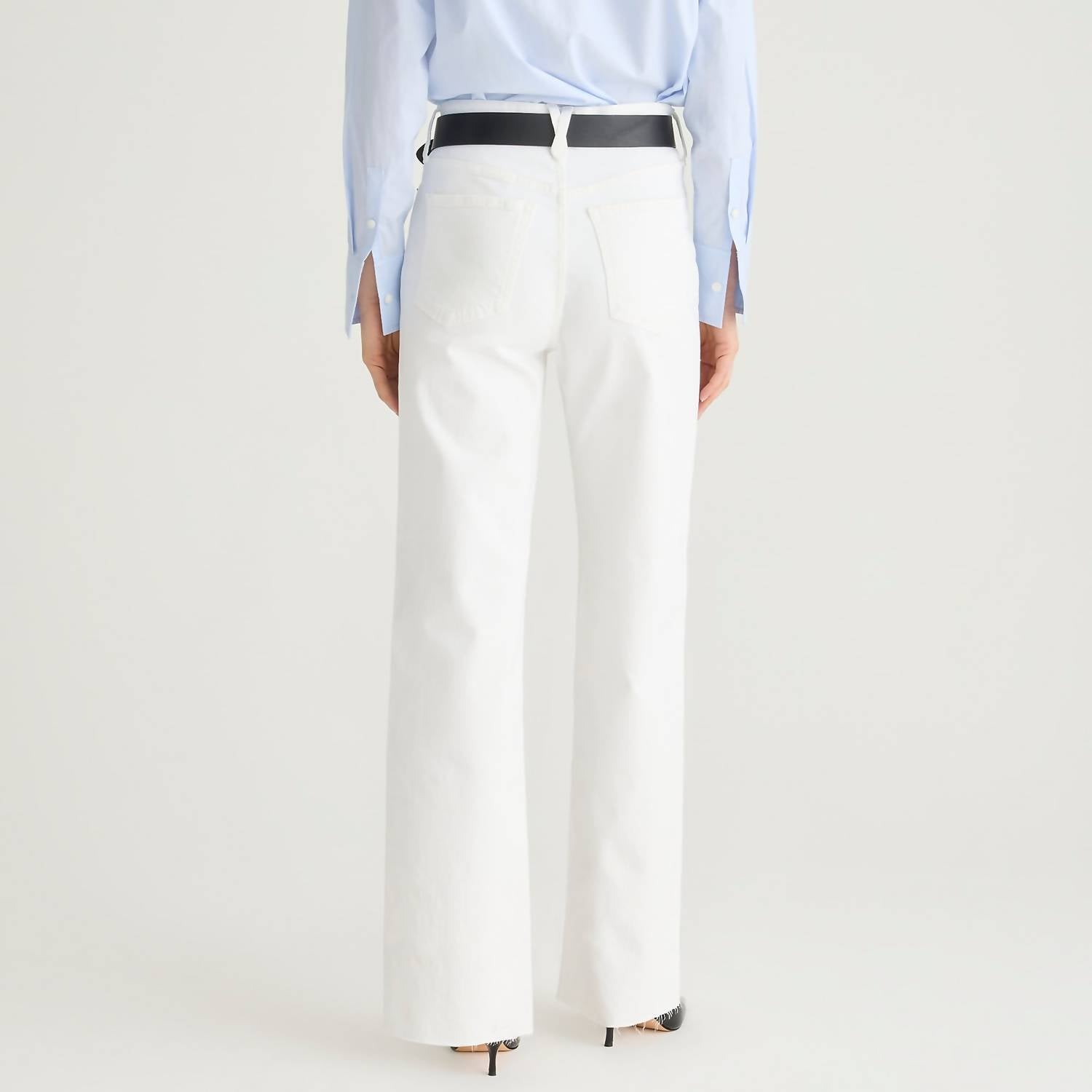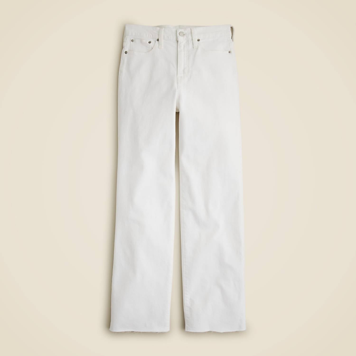 Pair these wide leg jeans with mules, slides or your favorite strappy sandals. Elevate your wardrobe with the J.Crew Full Length Slim Wide Leg Jeans - Tall, designed in a crisp white hue. These jeans are crafted from 99% cotton and 1% elastane, offering a comfortable and flattering fit. Featuring a high rise and slim fit through the hips and thighs, they transition into a roomy, wide leg for a chic silhouette. Originating from Mexico, they come with a zip closure and traditional 5-pocket style. Easy to care for, simply machine wash and tumble dry. With a front rise of 11.25 inches and an inseam of 30.5 inches, these jeans are perfect for a versatile and stylish look.