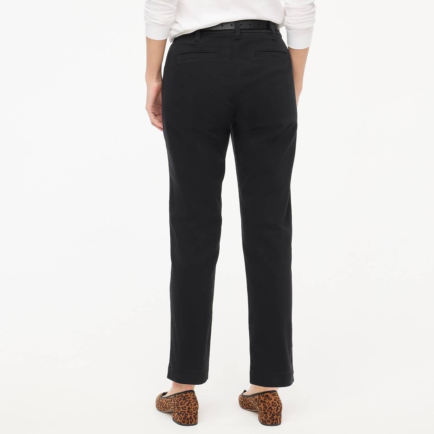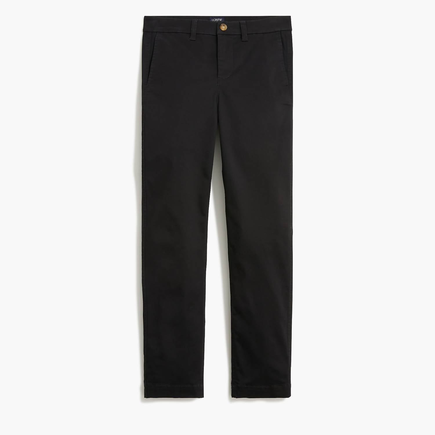 This straightleg pant is both stylish and comfortable. Did we mention the fit is perfection? Elevate your wardrobe with the J.Crew High-rise Girlfriend Chino Pant in timeless black, tailored for women seeking sophistication and comfort. Crafted from a blend of 97% cotton and 3% elastane, these chinos promise ease through the hip and thigh, with a straight leg cut and a flattering mid rise that sits at the waist. With practical features like slant and back welt pockets and a convenient zip closure, these pants maintain both style and functionality. Inseam: 28". Care is a breeze with machine wash and tumble dry instructions; made in Bangladesh.