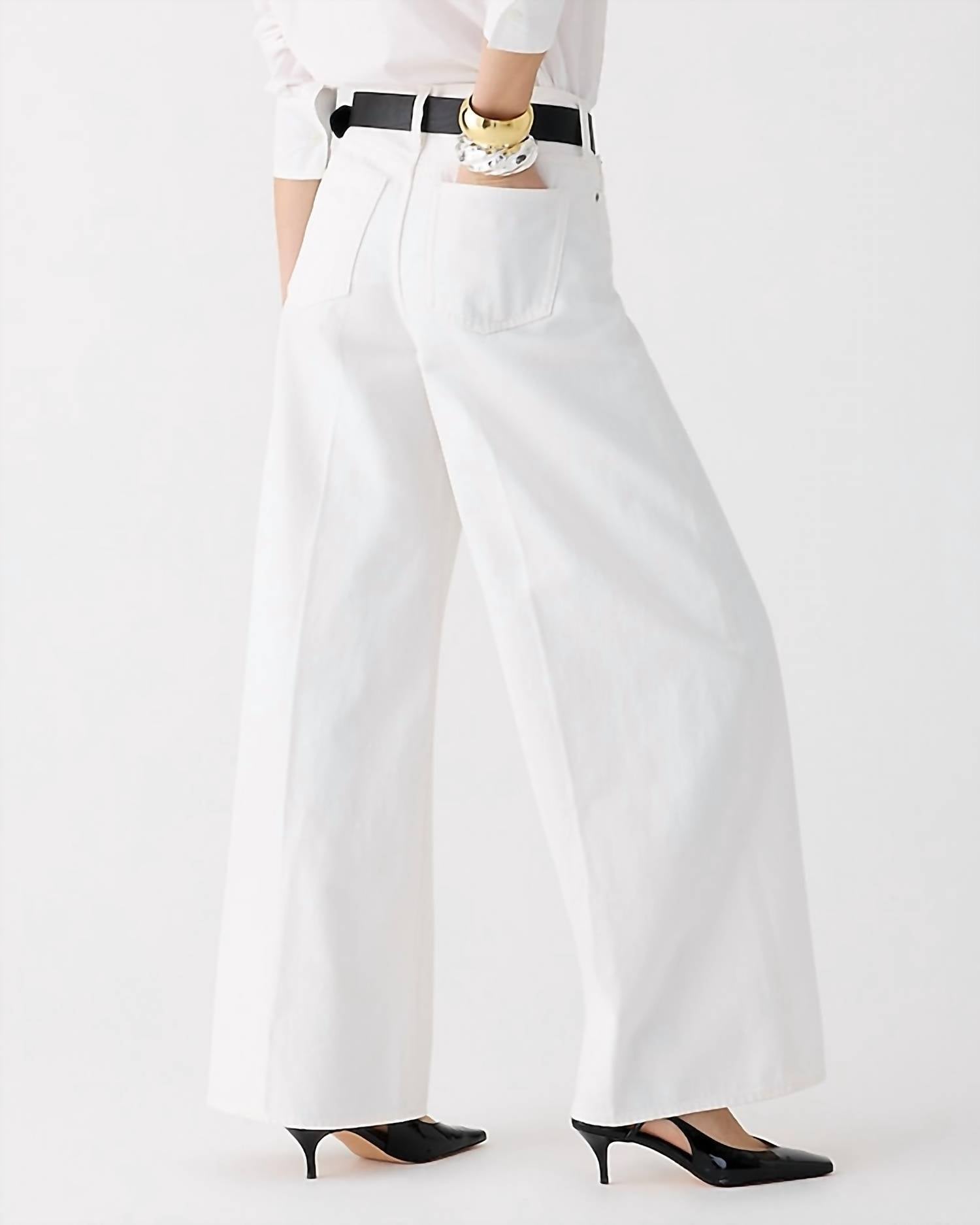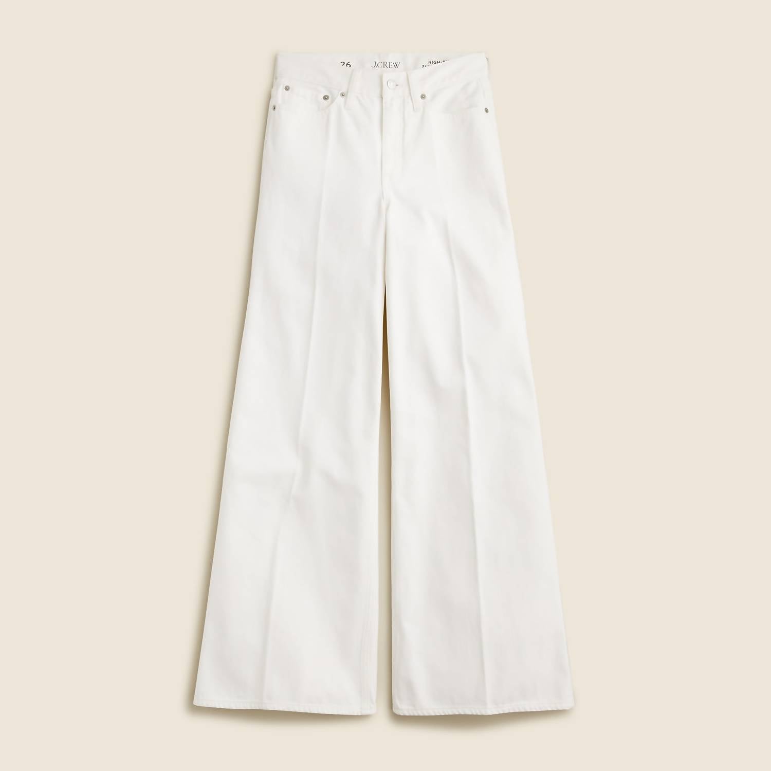 Pair these wide leg jeans with mules, slides or your favorite strappy sandals. Introducing the High Rise Superwide Leg Jean by J.Crew, a perfect blend of vintage inspiration and modern sustainability. These relaxed-fit jeans feature a flattering high rise and superwide legs, crafted from 100% cotton that includes 75% regenagri-certified cotton and 25% recycled cotton. Made from solid white denim, the jeans offer practicality with traditional 5-pocket styling and a zip closure. Care: Machine wash and tumble dry for easy maintenance. With an 11.25" front rise and a 31" inseam, these jeans are designed for comfort and style.