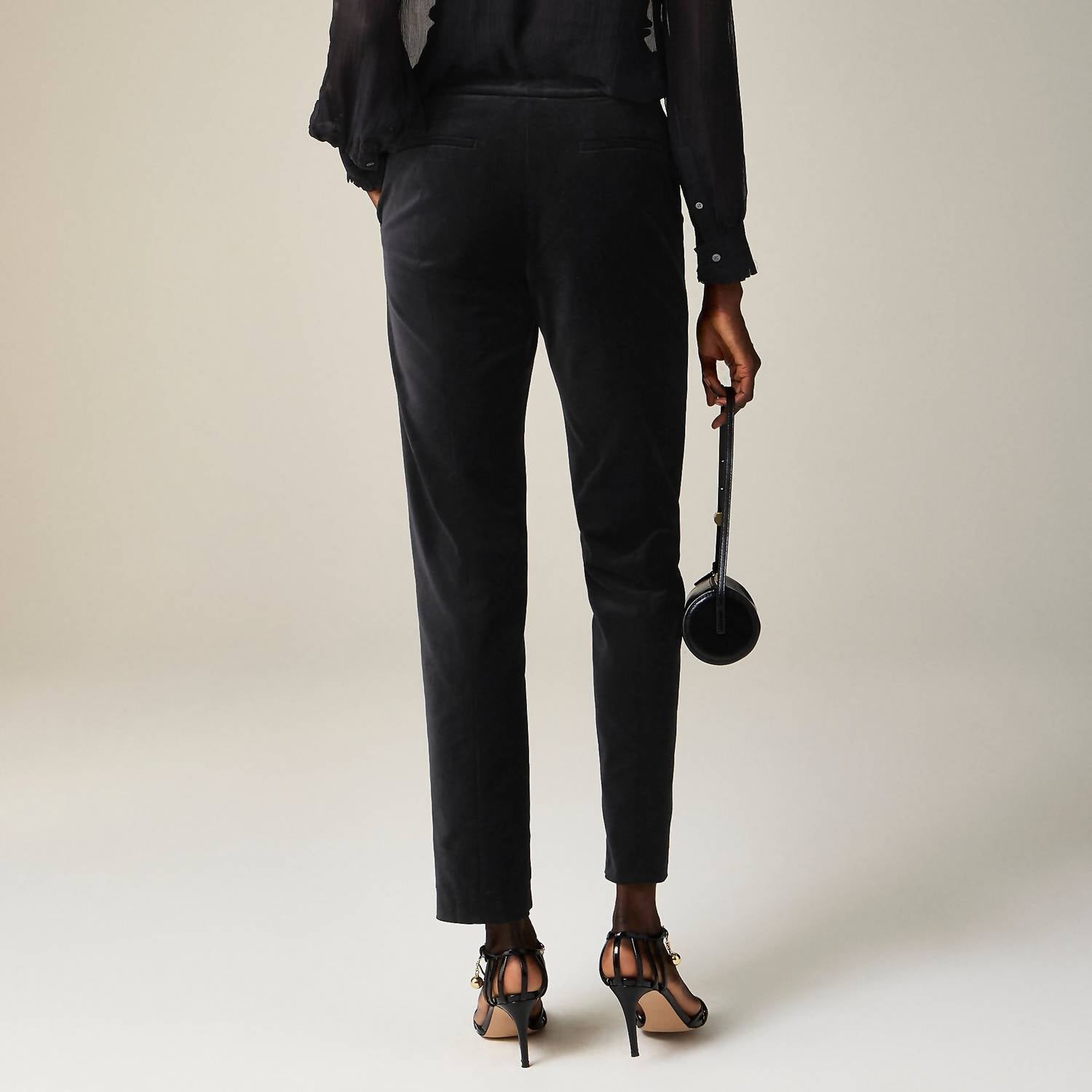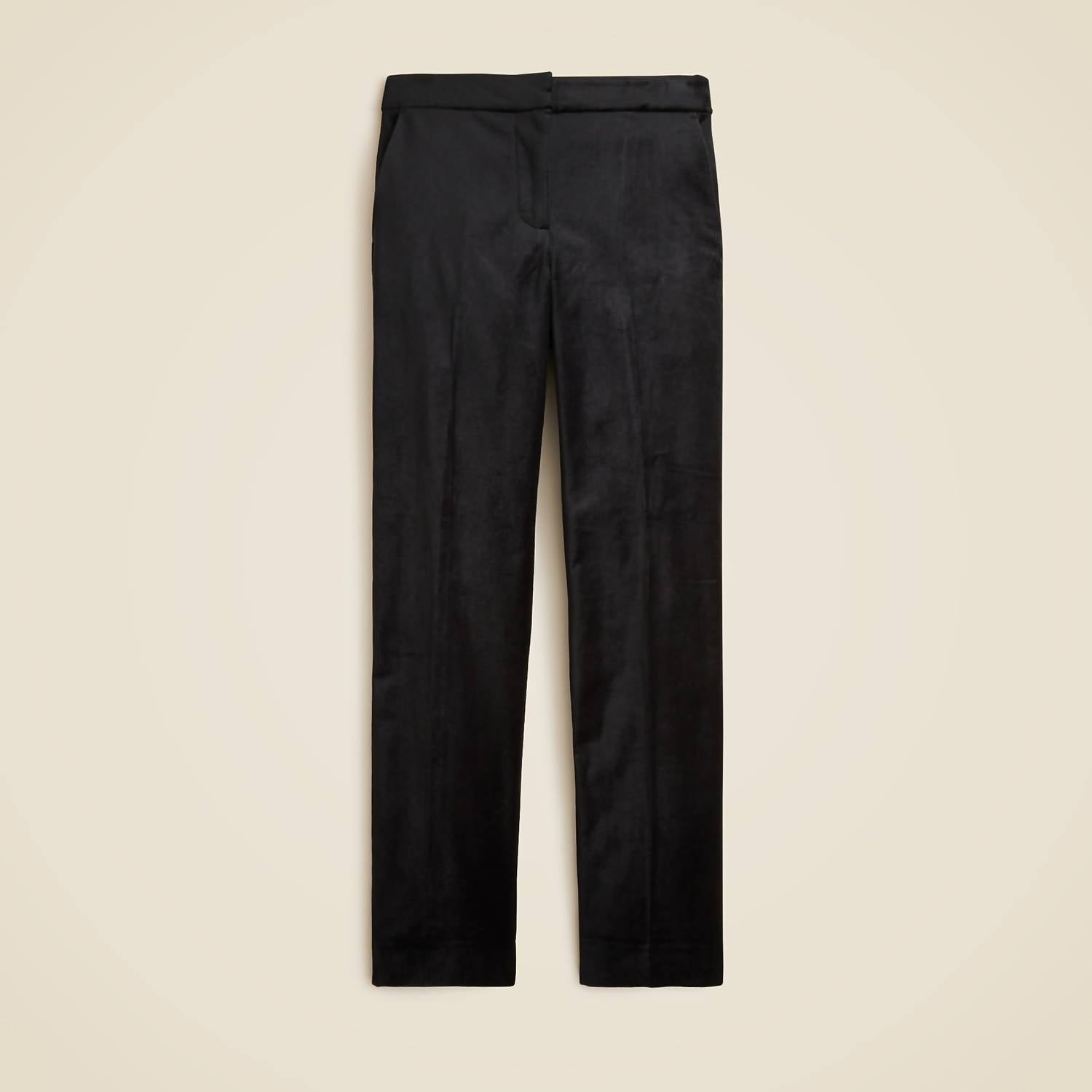 This straightleg pant is both stylish and comfortable. Did we mention the fit is perfection? Introducing the Kate Slim-Fit Pant In Velvet by J.Crew, an elegant choice for women seeking a modern look in a petite size. These high-rise, straight-leg pants in solid black velvet offer a sleek and sophisticated silhouette. Composition: 76% Cotton, 22% Lyocell, 2% Elastane. Closure: Zip fly. Featuring pockets and designed for a slim fit through the hip and thigh, these pants measure a 10 3/8" front rise, a 26" inseam, and a 14 3/4" leg opening. Made in Vietnam, they are conveniently machine washable and can be tumble dried.