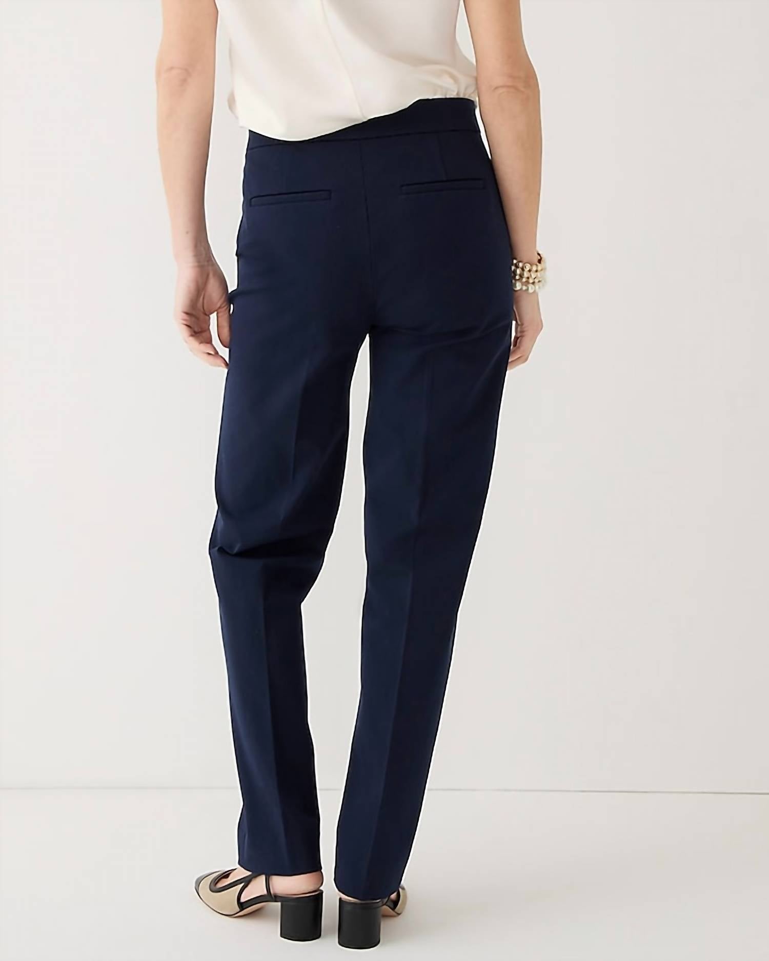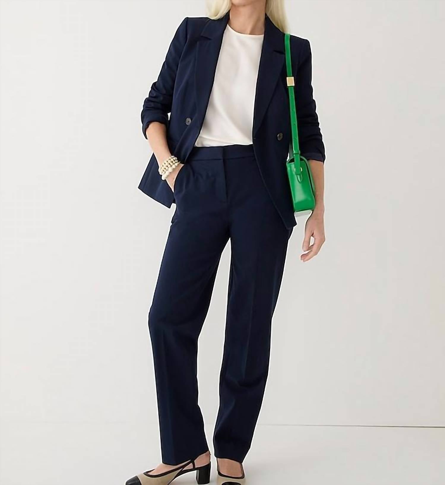 A perfectly tailored straight leg that you'll want in every color! Discover the J.Crew Kate Straight-leg Pant in a versatile navy hue, perfect for any modern work setting. These pants boast a high-rise fit with a streamlined straight-leg silhouette, complemented by easy comfort through the hip and thigh. Crafted from a bi-stretch blend of 52% cotton, 41% viscose, and 7% elastane, they ensure both style and comfort with Perfecting Pockets™. Closure: Zip closure. Care: Machine wash and tumble dry. The pants feature a front rise of 10.5 inches, a 26-inch inseam, and a leg opening of 15.75 inches for size 8, making them a flattering choice for any wardrobe.