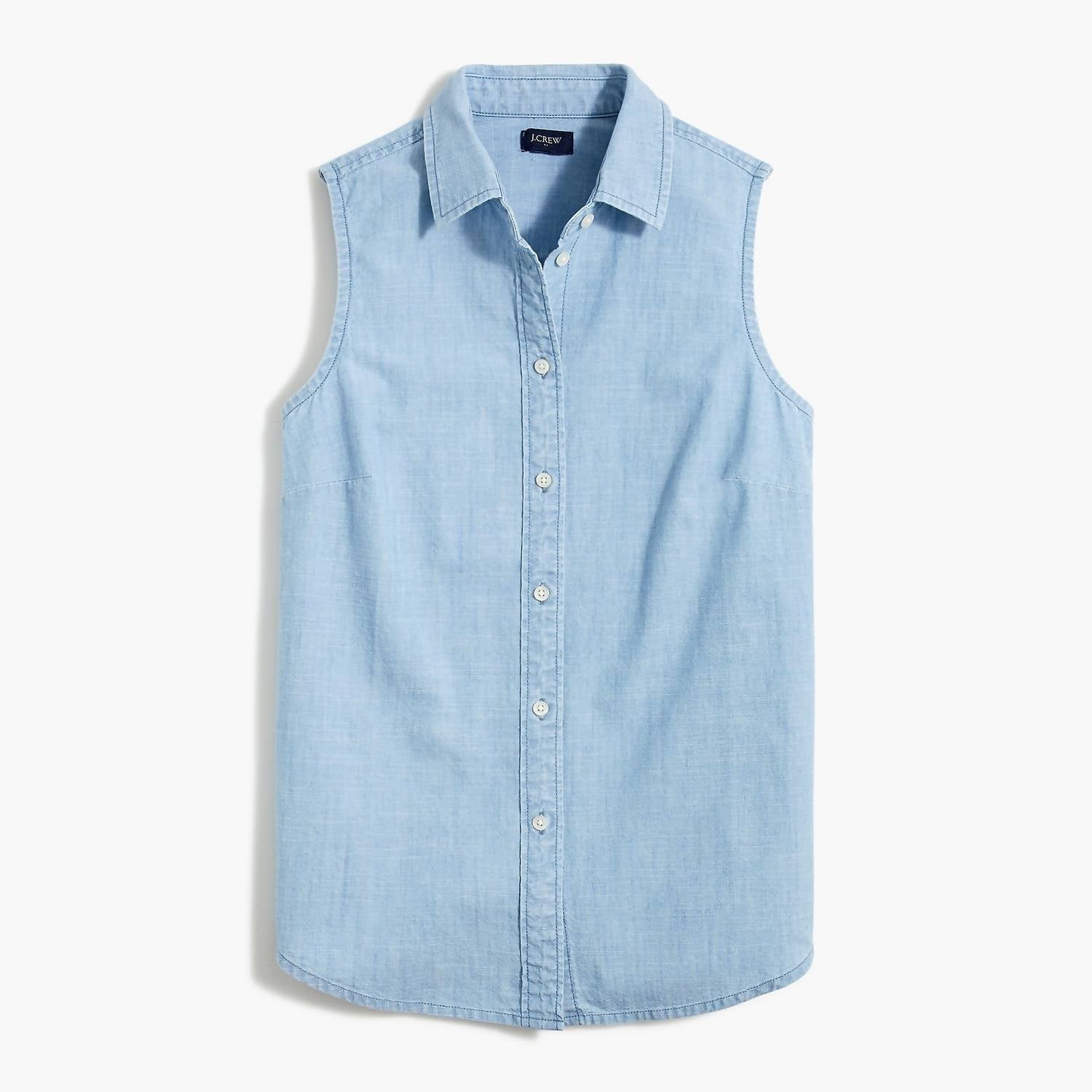 This button down shirt is comfortable yet polished. The Lightweight Chambray Casual Button Down Shirt by J.Crew in the Lovers Lane Wash is a must-have addition for any wardrobe. This sleeveless shirt, made entirely of 100% cotton, offers breathable comfort and features a stylish collar. Designed with a button closure for easy wearing, it is crafted in Vietnam. For hassle-free maintenance, simply machine wash and tumble dry.