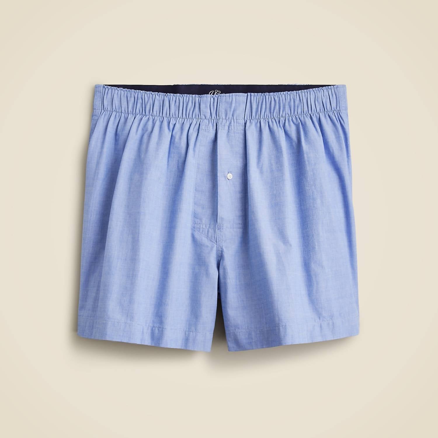Experience comfort and style with the Men's Patterned Boxers by J.Crew, available in a calming blue solid pattern. Designed in Bangladesh, these boxers are crafted from 100% cotton for softness, featuring a brushed elastic waistband and a button fly closure. They have a 4" inseam for the perfect fit. Care: Machine wash and tumble dry for ease and convenience.