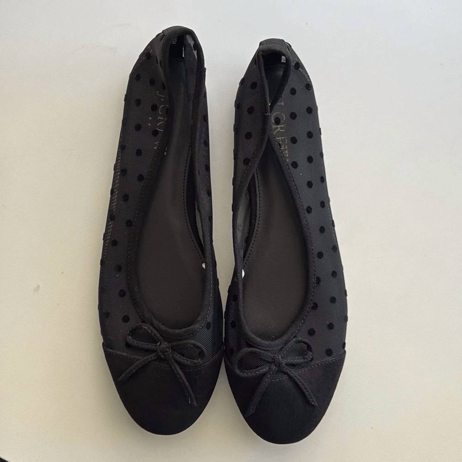 Loafers so versatile you can wear them with just about anything. Step into elegance with the Women's Mesh Cap Toe Ballet Flats by J.Crew. These classic flat heels feature a nylon upper with a rubber outsole, perfect for all-day comfort. Designed in a chic black color, they boast a round toe shape for a timeless look. Perfect for women, they seamlessly blend style and practicality with their flat heel less than 1 inch high.