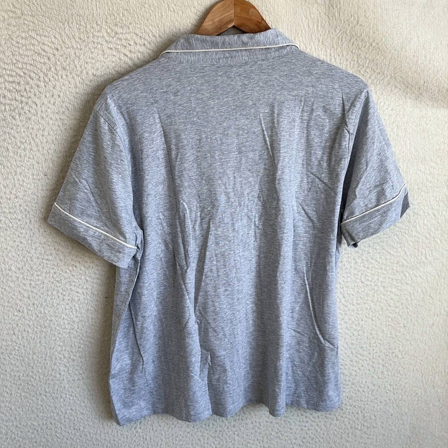 Pair with cozy slippers for pajama perfection. Experience ultimate comfort in the Women's Pajama Top by J.Crew, crafted in a solid grey hue. Featuring short sleeves and a classic collar, this top is made from a durable cotton blend, consisting of 93% cotton and 7% elastane, for a perfect stretch reminiscent of heritage styles. Proudly made in India, it measures 25 inches in body length and features an easy button-up closure. Care is simple: machine wash and tumble dry for convenient maintenance.