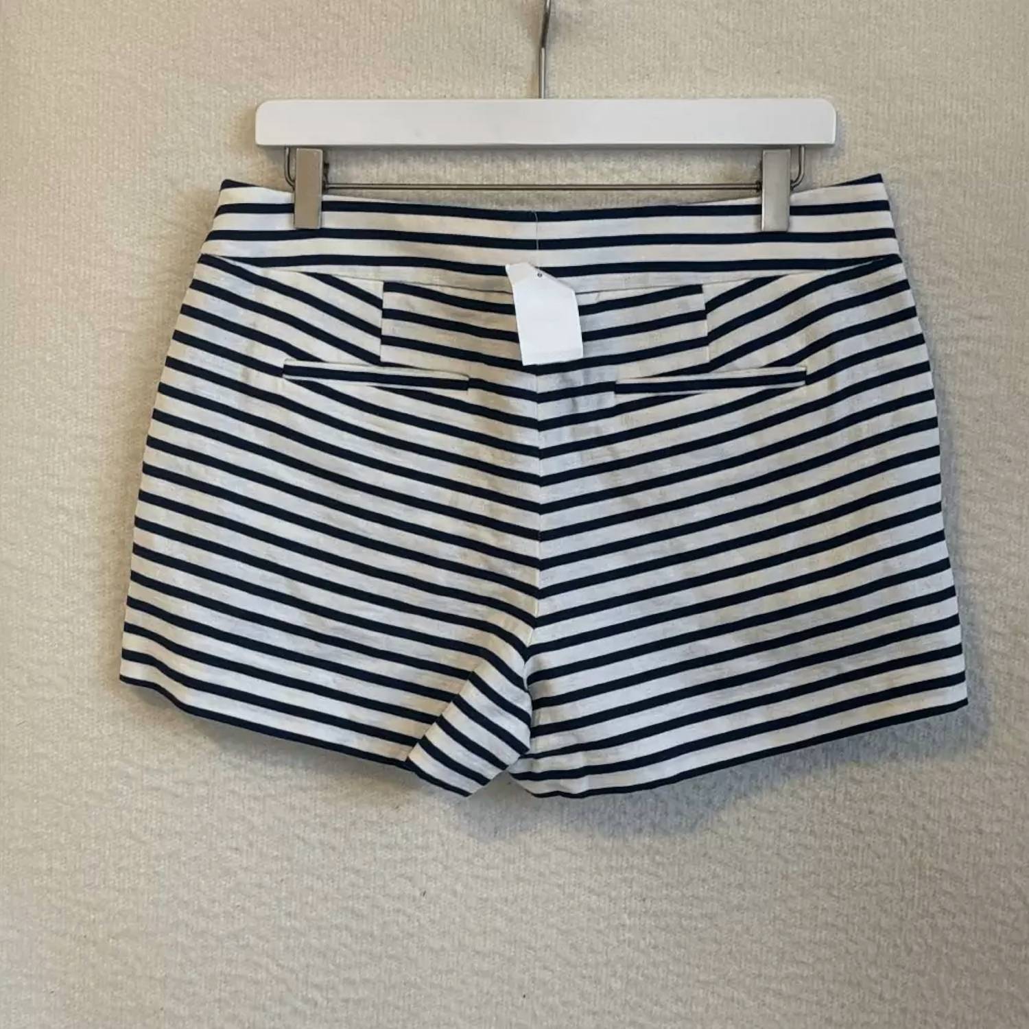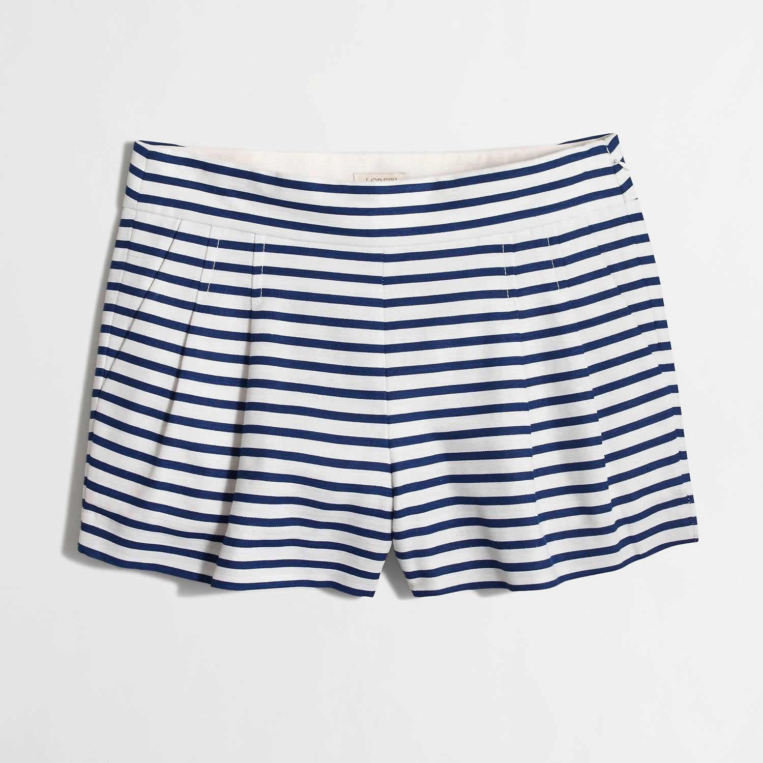 High-waist is here to stay and we especially love this style short. Discover the Women's Pleated Striped Shorts by J.Crew, a chic addition to your summer wardrobe. Crafted from a cotton blend of 65% cotton and 35% linen, these blue and white stripes provide a timeless appeal. With practical side and back welt pockets, they feature a convenient side zipper closure. Inseam: 3 inches. Origin: China. Care: Machine wash and tumble dry. Ideal for those who prefer a slightly lower waistline.