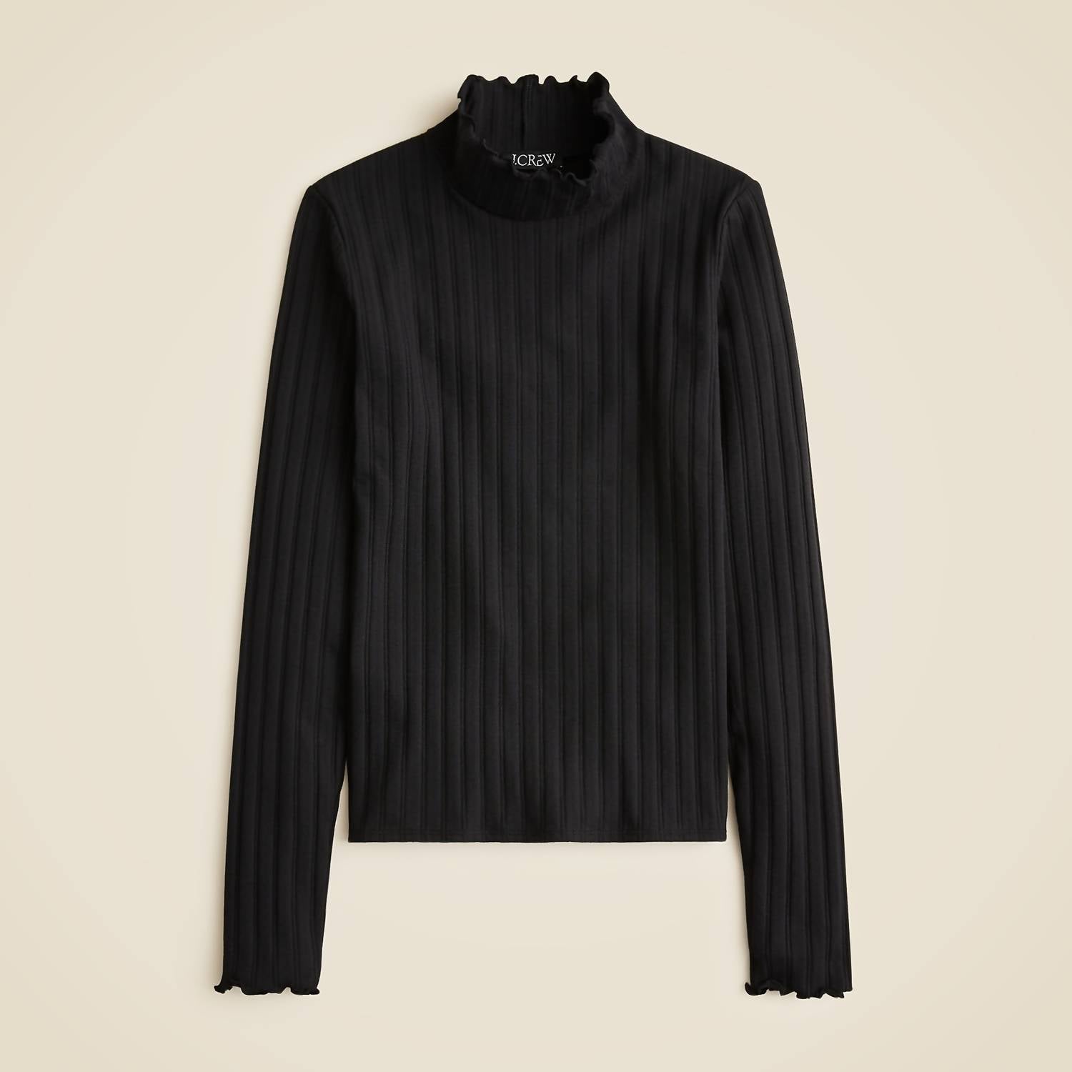 Fit to perfection and effortlessly chic. Elevate your wardrobe with the Women's Pointelle Knit Turtleneck Top by J.Crew, a sophisticated choice in classic black. This top boasts a sweet scalloped turtleneck and long sleeves, designed in a comfortable cotton blend for a perfect fit. Composition: 55% Cotton, 37% Polyester, 8% Elastane. Garment length: 23". Closure: Pull on, made in Vietnam. Care: Hand wash and line dry.