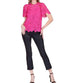 Elevate your boho chic style with the Short Sleeve Lace Top by Jade, crafted in vibrant fuchsia. This textured blouse features a lined body with sheer shoulders and short sleeves for a touch of elegance. Composition: 100% Polyester. Care instructions: Dry Clean Only. Made in China.
