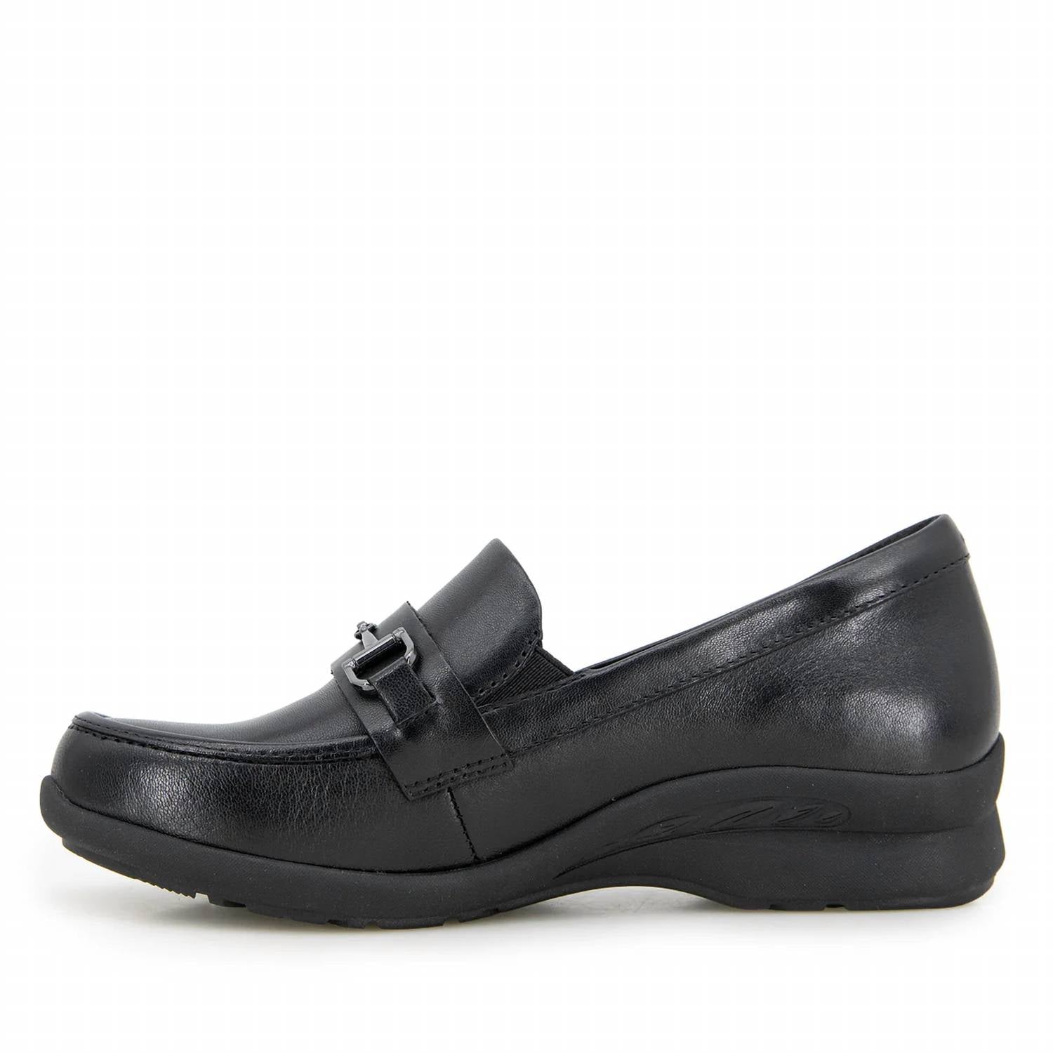 A preppy yet feminine take on the classic loafer. Perfect blend of style and comfort crafted for women who appreciate elegance. Adorned with a sophisticated horsebit buckle and features a low block heel. Made from premium leather with a flexible rubber outsole. Offers a round toe shape for a comfortable fit. Easy slip-on design with removable contoured insoles ensures a customized experience. APMA accepted for added assurance.