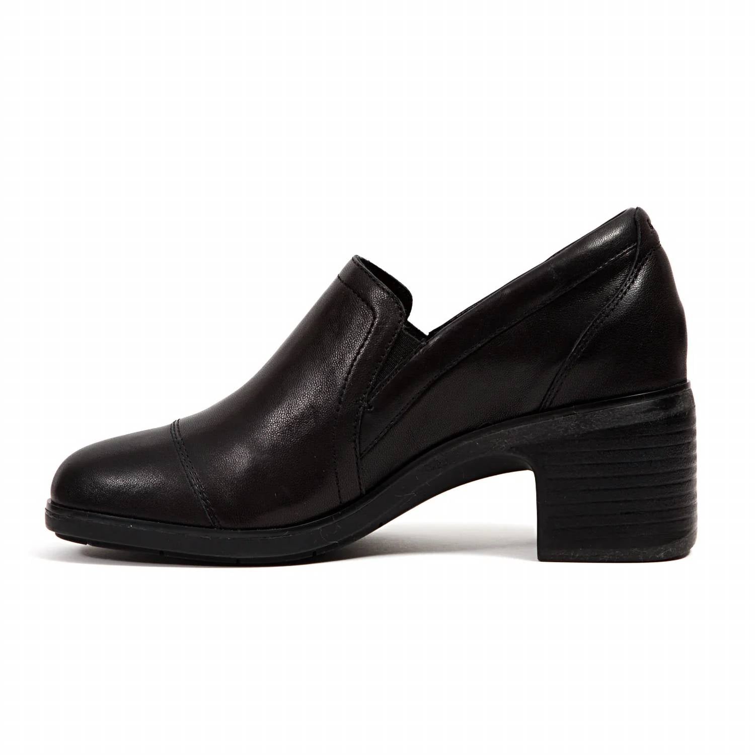 A preppy yet feminine take on the classic loafer. Step into elegance. Crafted from premium leather. Feature a contoured insole for superior comfort, flexible rubber outsole, and mid-height block heel at 2.25 inches for added height. Combine the classic loafer look with modern comfort features. Designed with a round toe.