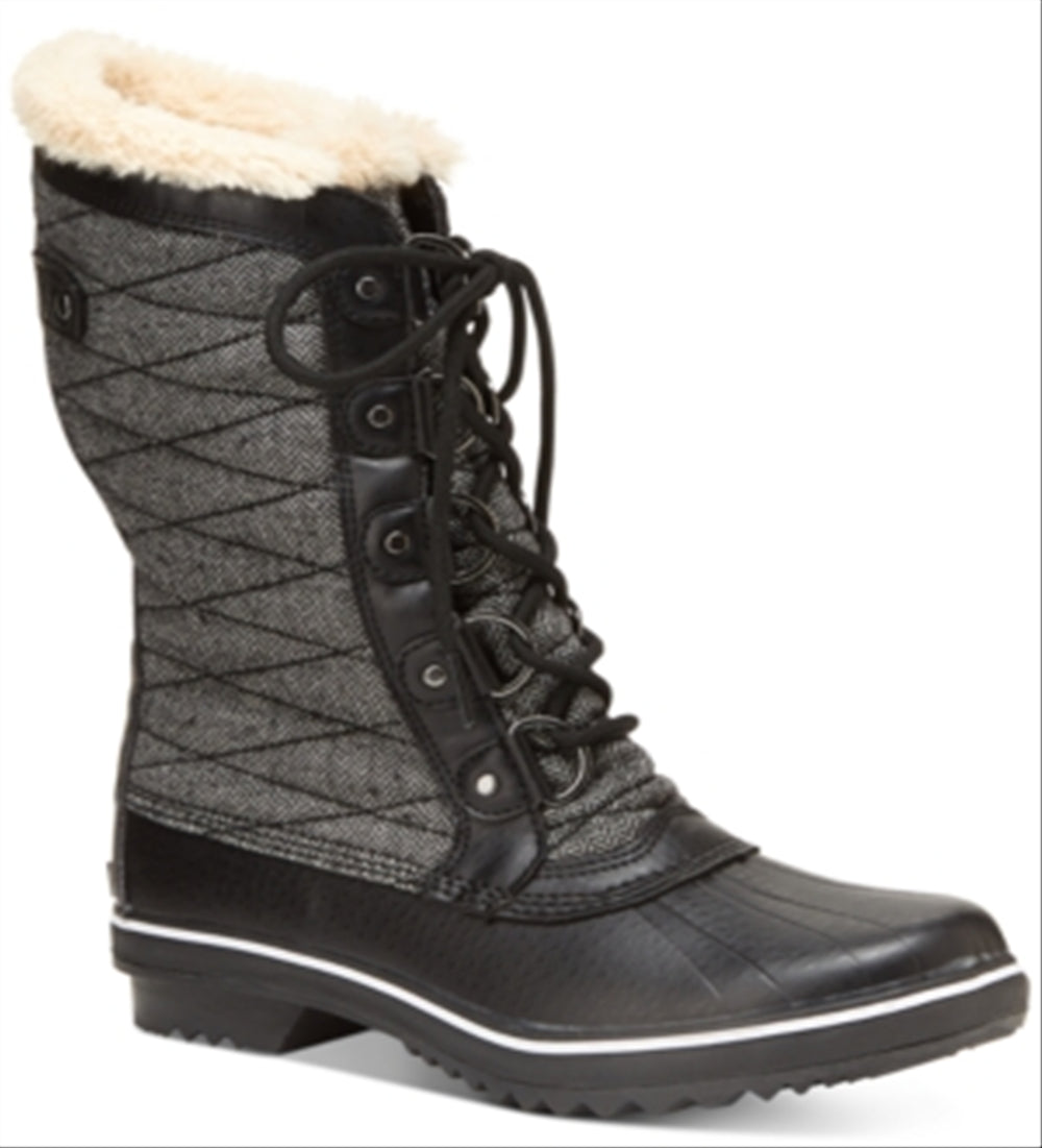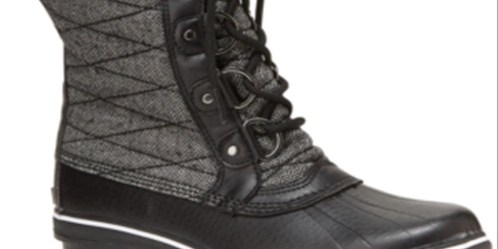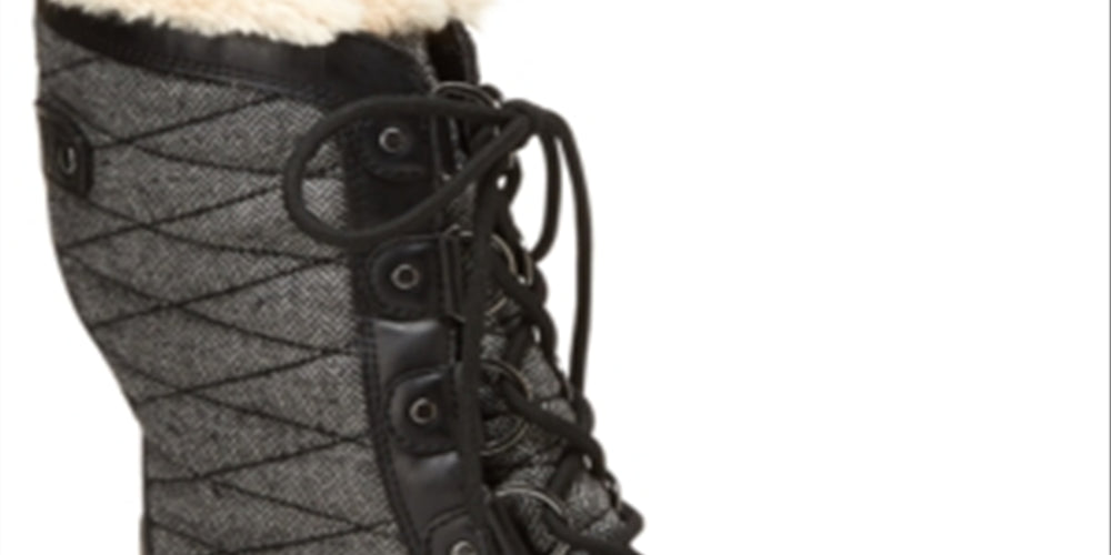JBU Women's Platform Fur Trim Water Resistant Quilted Lorna Round Toe Block Heel Lace up Snow Boots Black Size 8