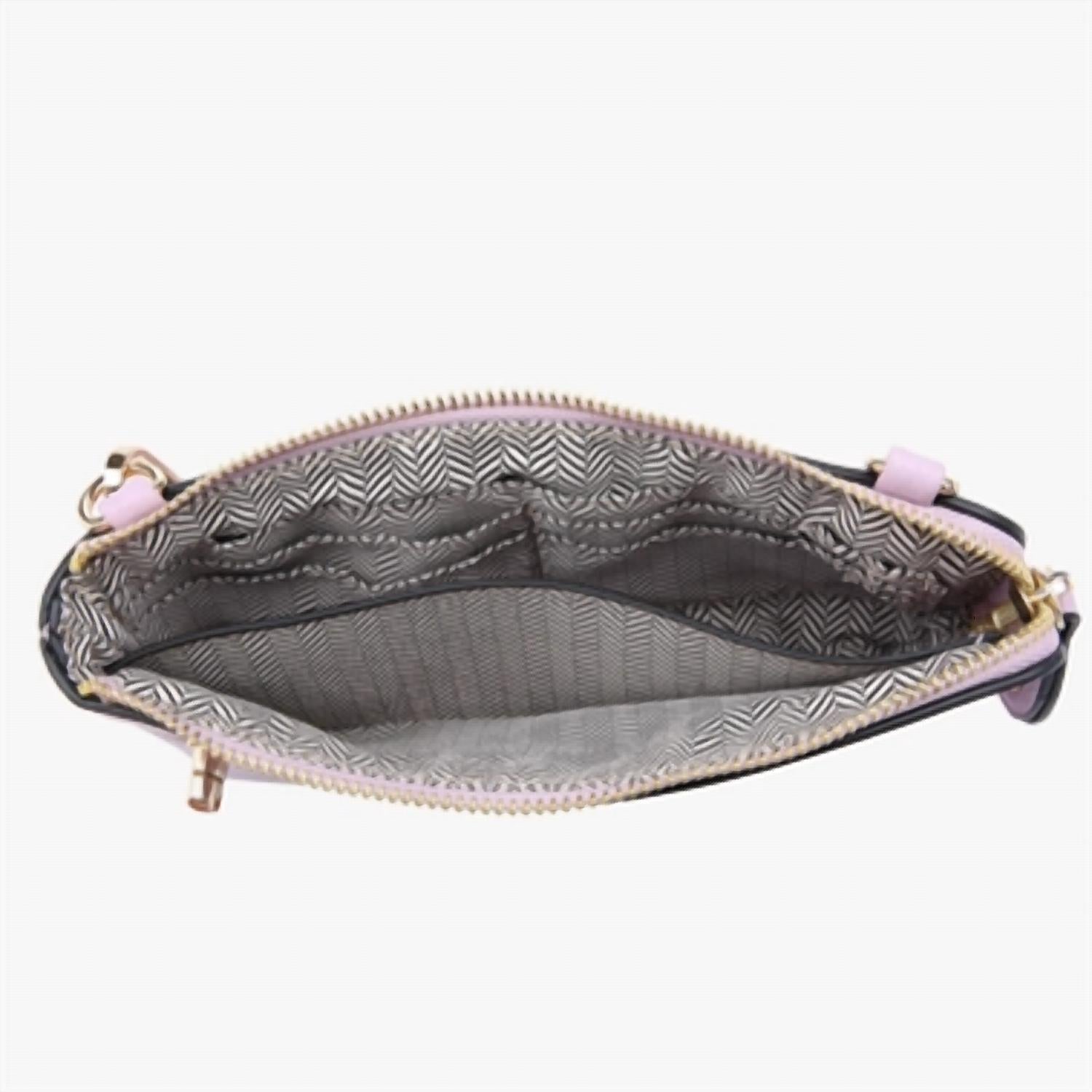 The Jen & Co. Dark Rose Crossbody Wristlet Clutch combines practicality and style in vegan leather with a 8.5" length, 5" height, and 0.5" depth. It features a twist lock closure and an adjustable shoulder strap for versatile wear. The interior offers a main center zip compartment with inner cardholders, and the wristlet strap is detachable for added convenience. Elevate your accessory game with this chic and functional piece, perfect for any occasion.
