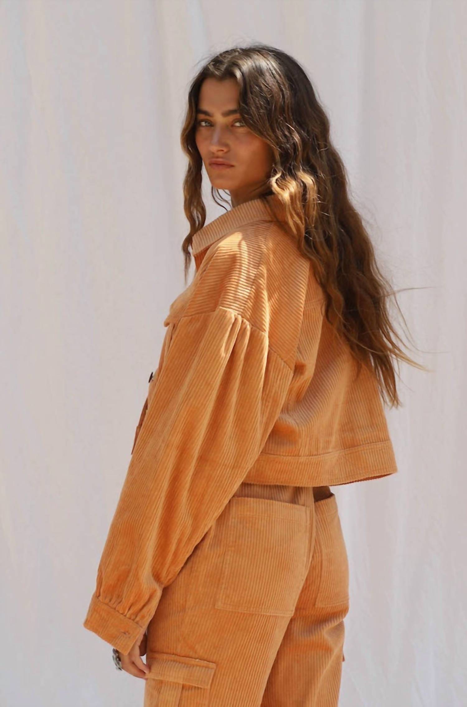 Cute, casual, and comfortable. This jacket is a must have. Discover the Yin Yang Cropped Jacket by JEN'S PIRATE BOOTY, a chic addition to your spring wardrobe. This sand-colored, long sleeve jacket is crafted from 100% cotton corduroy, offering both comfort and style. Designed with elegant gold button accents and handy pockets, it's perfect for a vacation-ready streetwear look. Closure: Button closure. Care: Machine wash and tumble dry.