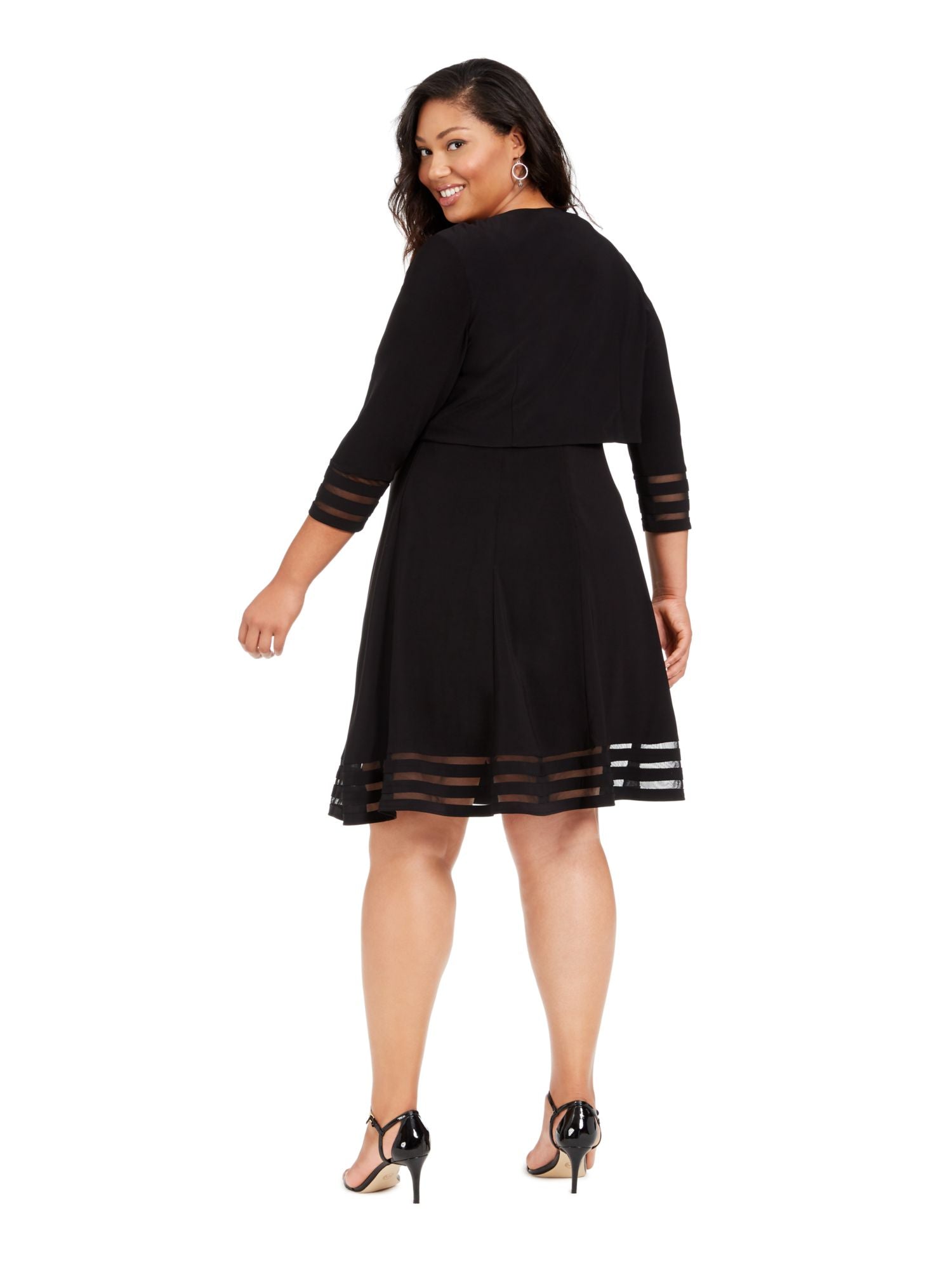 Jessica Howard Women's 3/4 Sleeve Knee Length Fit Flare Dress Black Size 14W