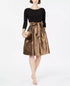 Approx. 32-3/4 long from center back neck to hem. Length is based on size 6 and varies 1/4 between sizes|Boat neckline; V-back; Fit & flare silhouette|Hidden back zipper with hook-and-eye closure|Solid bodice; animal-print pleated skirt; removable sash belt; pockets at hips|Crinoline at lining hem