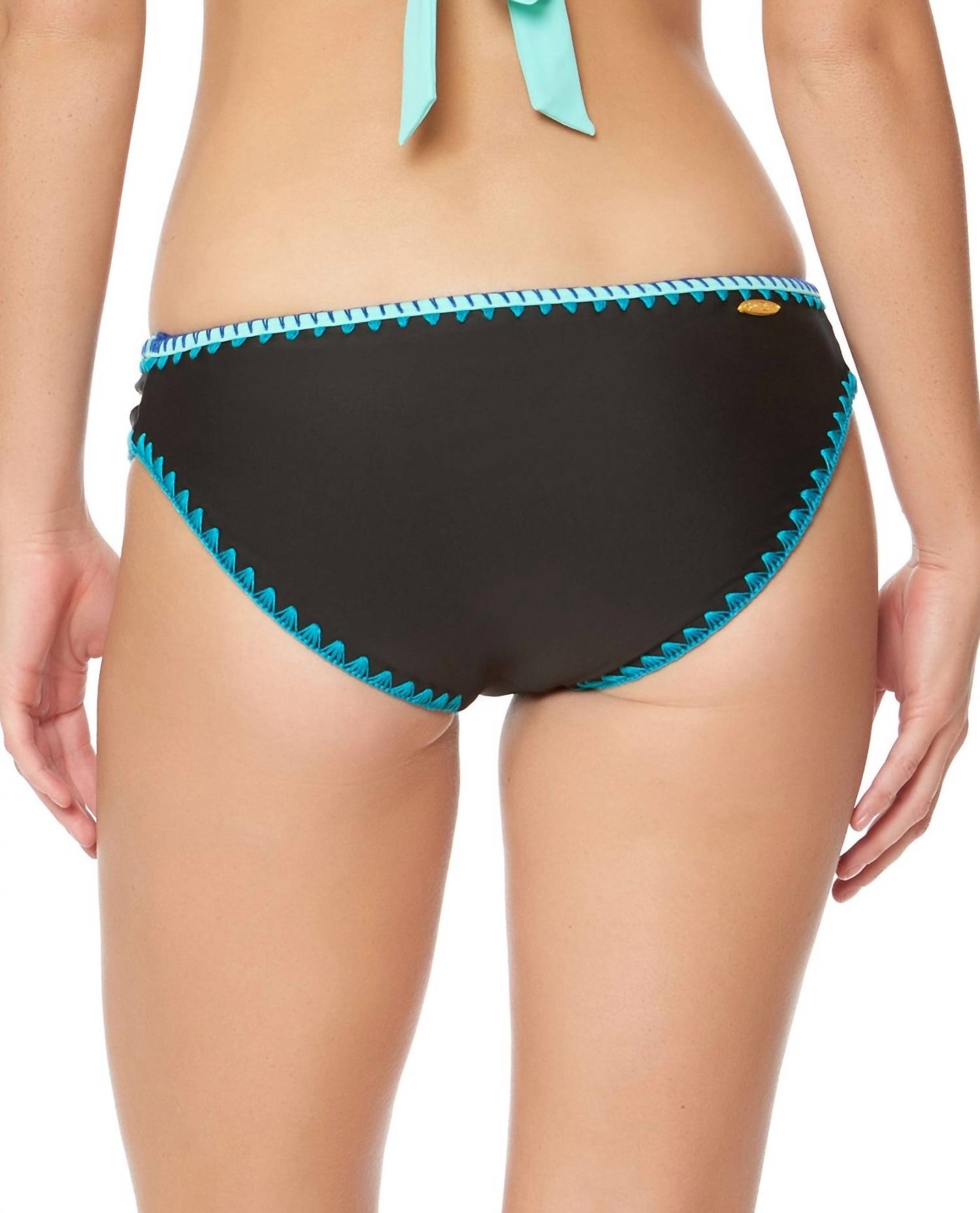 Ideal for relaxed poolside moments, this adorable swimsuit effortlessly transitions into the perfect sunset dinner outfit when paired with a flowing skirt. Introducing the Jessica Simpson Woodstock Reversible Hipster Bikini Bottom, a stylish choice for your swimwear collection. Crafted from an 82% Nylon and 18% Spandex blend, this bikini bottom offers a low-rise fit with full bottom coverage in a chic black and seafoam color combination. The split side detail and contrasting stitch trim elevate its design, making it both fashionable and functional. Enjoy the versatility of a reversible hipster style for a fresh look every time.