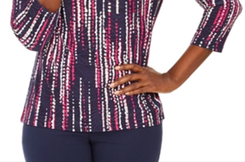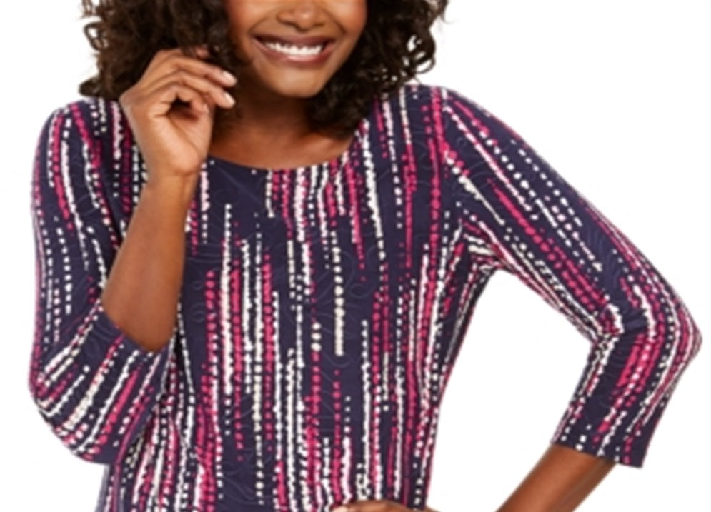 JM Collection Women's 3/4 Sleeve Jacquard T-Shirt Blue Size Small
