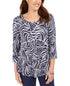 JM Collection Women's 3/4 Sleeve Printed Top Blue Size Medium