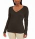 JM Collection Women's Button-Cuff Pullover Sweater Espresso Roast Size XS