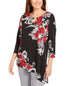 JM Collection Women's Embellished Asymmetrical Tunic Black Size Petite Small