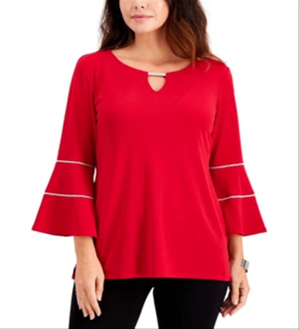 JM Collection Women's Embellished Bell Sleeve Top Red Size Large