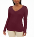 JM Collection Women's Embellished Sleeve V Neck Sweater Red Size Large