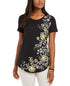 JM Collection Women's Floral Scoop Neck Top Black Size M